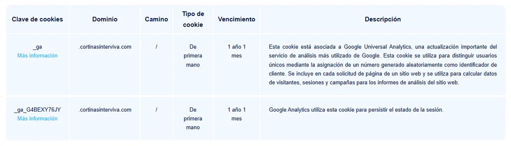 · Cookies pròpies: Són aquelles que s' envien a l' equip terminal de l' interessat des d' un equip o domini gestionat pel propi editor i des del qual es presta el servei demanat per l' usuari.